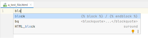 I am using HTML blocks like {% block content %} frequently but having to type out the brackets and percentage symbols is a hassle. Is there a shortcut or other way to automate this